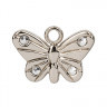 Декоративное украшение подвеска в форме "бабочки" с 4-ю стразами.Используется для украшения женского белья, одежды, обуви, сумок и т. д.Размер украшения:17х11мм.Покрыты защитным слоем, который дает возможность изделию не ржаветь.При значительном повреждении защитного слоя ржавение возможно.