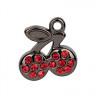 Декоративное украшение подвеска в форме 2-х "вишенок" со стразами.Используется для украшения женского белья, одежды, обуви, сумок и т. д.Размер украшения:10х12мм.Покрыты защитным слоем, который дает возможность изделию не ржаветь.При значительном повреждении защитного слоя ржавение возможно