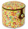 Лицевая поверхность шкатулки из текстильных материалов. Предназначена для хранения швейных мелочей