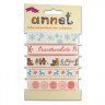 Набор хлопчатобумажных лент с рисунком. В каждом наборе пять лент по 1 м с различными рисунками. Каждый набор лент "Annet" подобран в соответствии с определенной тематикой и в одном цветовом решении, что облегчает выбор лент при создании альбомов и открыток. Набор лент для скрапбукинга - это идеальное начало для того, кто только решил заняться этим направлением дизайна, а так же и для опытных мастеров.