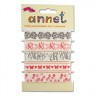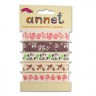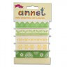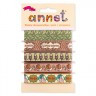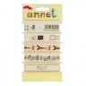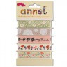 Набор хлопчатобумажных лент с рисунком. В каждом наборе пять лент по 1 м с различными рисунками. Каждый набор лент "Annet" подобран в соответствии с определенной тематикой и в одном цветовом решении, что облегчает выбор лент при создании альбомов и открыток. Набор лент для скрапбукинга - это идеальное начало для того, кто только решил заняться этим направлением дизайна, а так же и для опытных мастеров.