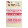 Набор декоративных лент. В наборе 5 отрезов по 1 м.Набор "001-004"-репсовые лента с рисунком, репсовые лента отделочной строчкой, капроновая лента с атласными краями, атласная лента с рисунком.Набор "005, 006, 008"- атласная лента 16мм, 3 атласные ленты 10мм, репсовая лента 10мм.Набор "007" -атласная лента 16 мм, 3 репсовых ленты 10мм, атласная лента 10 мм.Набор "009" - атласная лента 16 мм, 4 атласных ленты 10 мм.Набор "010" - атласная лента 16 мм, 2 атласные ленты 10мм, 2 репсовых ленты 10 мм.Набор "011" - репсовая лента 16 мм, 4 атласных ленты 10 мм.Каждый набор лент "Annet" подобран в одном цветовом решении, что облегчает выбор лент при создании альбомов и открыток. Набор декоративных лент для скрапбукинга - это идеальное начало для того, кто только решил заняться этим направлением дизайна, а так же и для опытных мастеров.