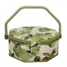 Шкатулка в форме многоугольника с ручкой, основа - дерево, лицевая поверхность из текстильных материалов. Шкатулка имеют пластиковую вставку. Предназначена для хранения швейных мелочей.
