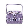 ОписаниеКвадратная шкатулка с ручкой, основа - дерево, лицевая поверхность из текстильных материалов с декоративной плетенной отделкой. Шкатулка имеют пластиковую вставку.Предназначена для хранения швейных мелочей.