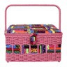 Прямоугольная шкатулка с ручкой, основа - дерево, лицевая поверхность из текстильных материалов с декоративной плетенной отделкой. Шкатулка имеют пластиковую вставку.Предназначена для хранения швейных мелочей.