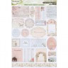 Фигурные вырубные элементы из плотного принтованного картона. Применяются в скрапбукинге для украшения скрап-страничек, открыток, коробочек, приглашений и т. д. Вырубные элементы имеют клеевой слой. На бумажной палетке расположено множество вырубок с различными дизайнами, размерами и формами. Общий размер палетки: 20.5х30.5 см.