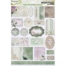 Фигурные вырубные элементы из плотного принтованного картона. Применяются в скрапбукинге для украшения скрап-страничек, открыток, коробочек, приглашений и т. д. Вырубные элементы имеют клеевой слой. На бумажной палетке расположено множество вырубок с различными дизайнами, размерами и формами. Общий размер палетки: 20.5х30.5 см.