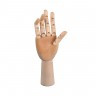 Материал: древесина. Модель руки с подвижными пальцами представляет собой кисть человека, пальцы которой двигаются в местах соединения. Детали между собой скрепляются металлическими болтиками и пружинками, что предоставляет возможность зафиксировать модель в необходимом положении. Деревянные модели используют любители, начинающие художники, художники как наглядное пособие для отработки зарисовки частей тела человека, а также силуэт/фигуру человека в различных позах.