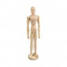 Материал: древесина. Манекен человека представляет собой куклу, изображающую человеческий силуэт/фигуру с подвижными деталями: руками, ногами, головой и телом. Детали между собой скрепляются металлическими болтиками и пружинками, что предоставляет возможность зафиксировать манекен в необходимом положении. Деревянные манекены используют любители, начинающие художники, художники как наглядное пособие для отработки зарисовки частей тела человека, а также силуэт/фигуру человека в различных позах.