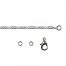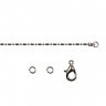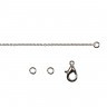 В набор входит цепь, 2 колечка и замок-карабин.Для того чтобы собрать цепочку, могут потребоваться тонкогубцы или круглогубцы. Сначала возьмите одно колечко, за края раскройте его вбок, с помощью колечка соедините карабин и один конец цепочки, закройте кольцо. На второй конец цепочки присоедините второе колечко.