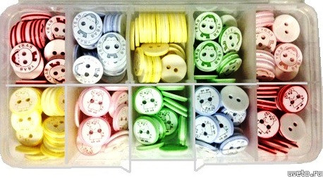 Каталог / Шитье / Пуговицы / Пришивные / Набор пуговиц на прокол контейнер 200 шт. (HobbyLife) 12мм пластик