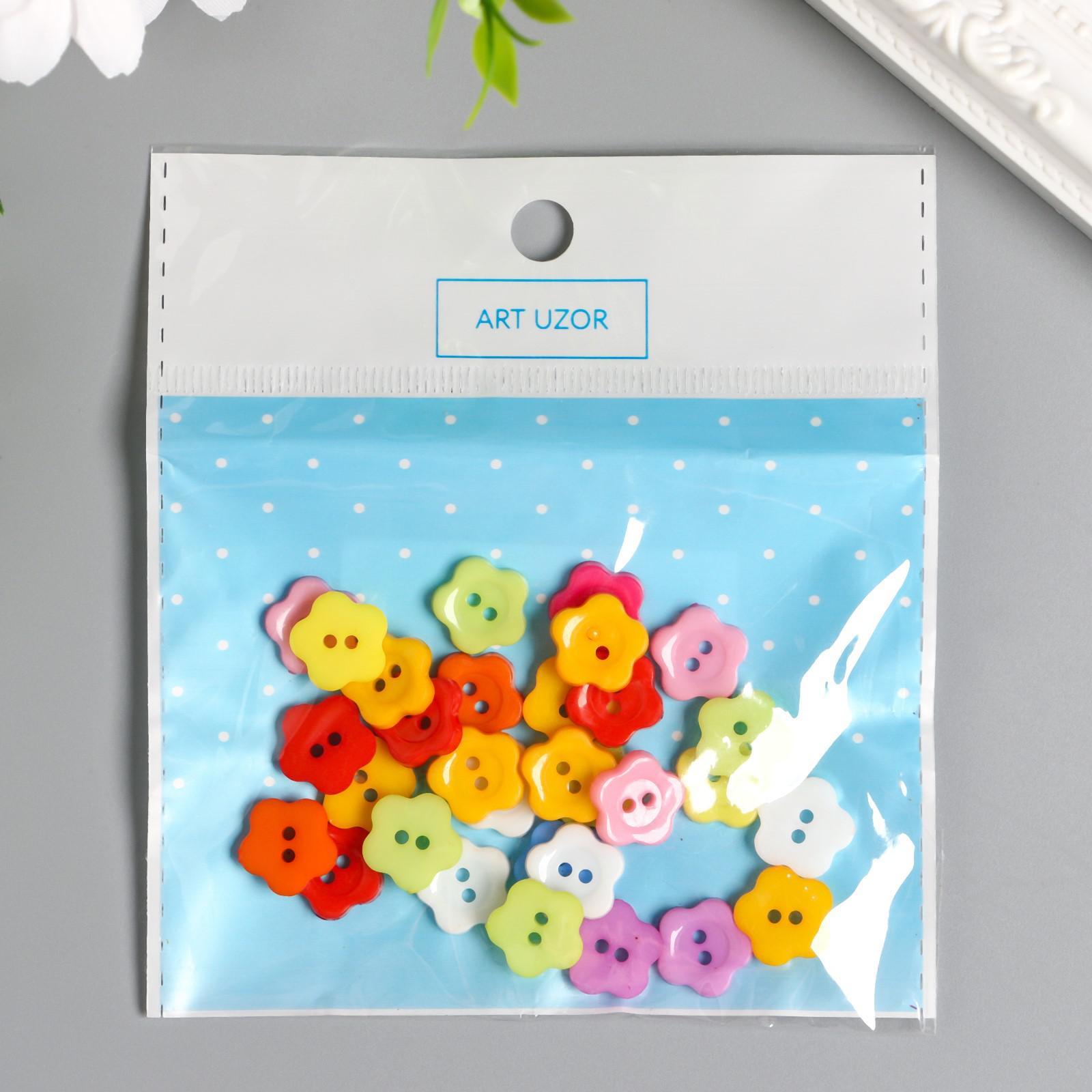 Каталог / Шитье / Пуговицы / Пришивные / Набор пуговиц на 2 прокола Цветочки блистер 30 шт. (Арт Узор 1056476) 12мм пластик