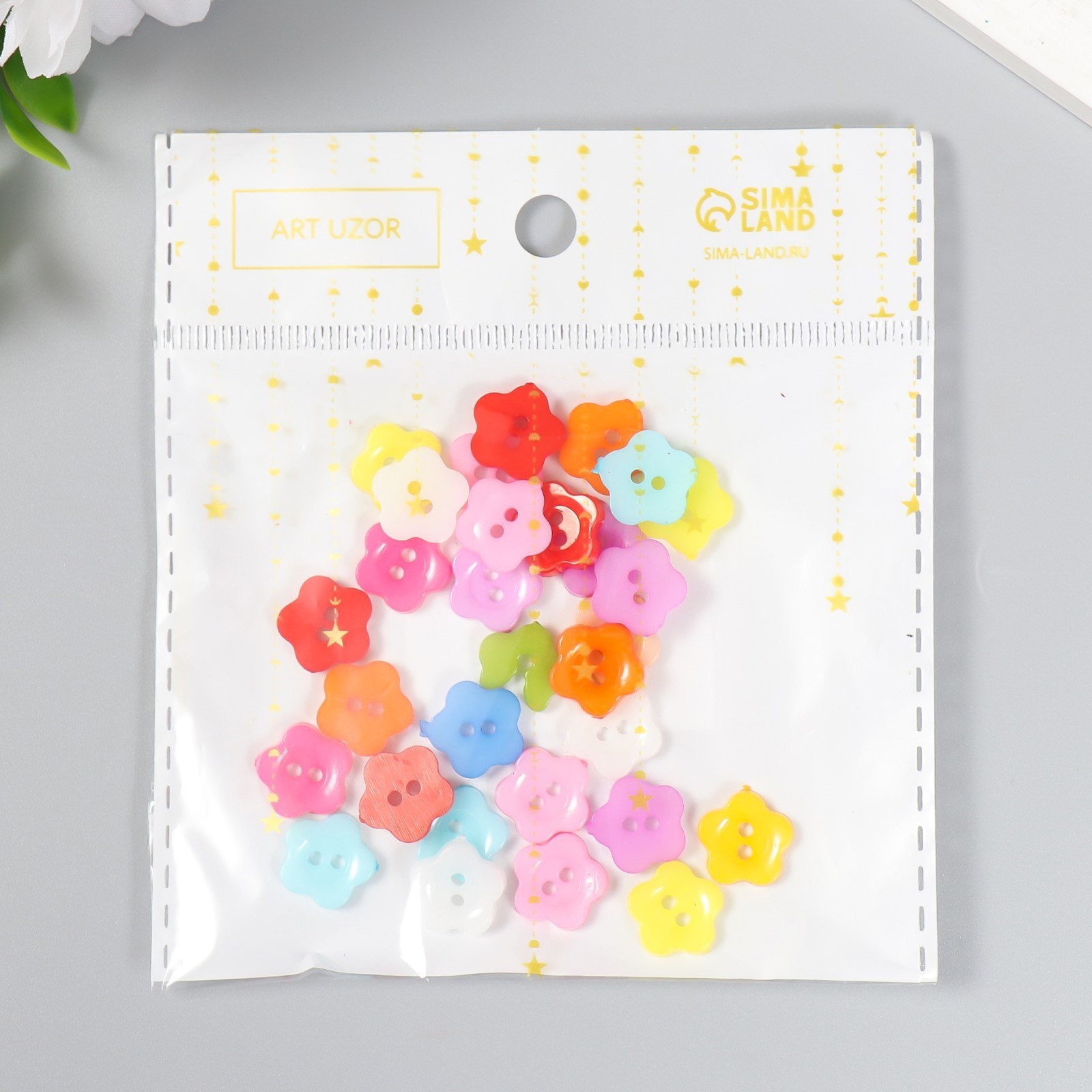 Набор пуговиц на 2 прокола Цветочки блистер 30 шт. (Арт Узор 1056476) 12мм пластик   Набор пуговиц на 2 прокола Цветочки блистер 30 шт. (Арт Узор 1056476) 12мм пластик [1] [2]