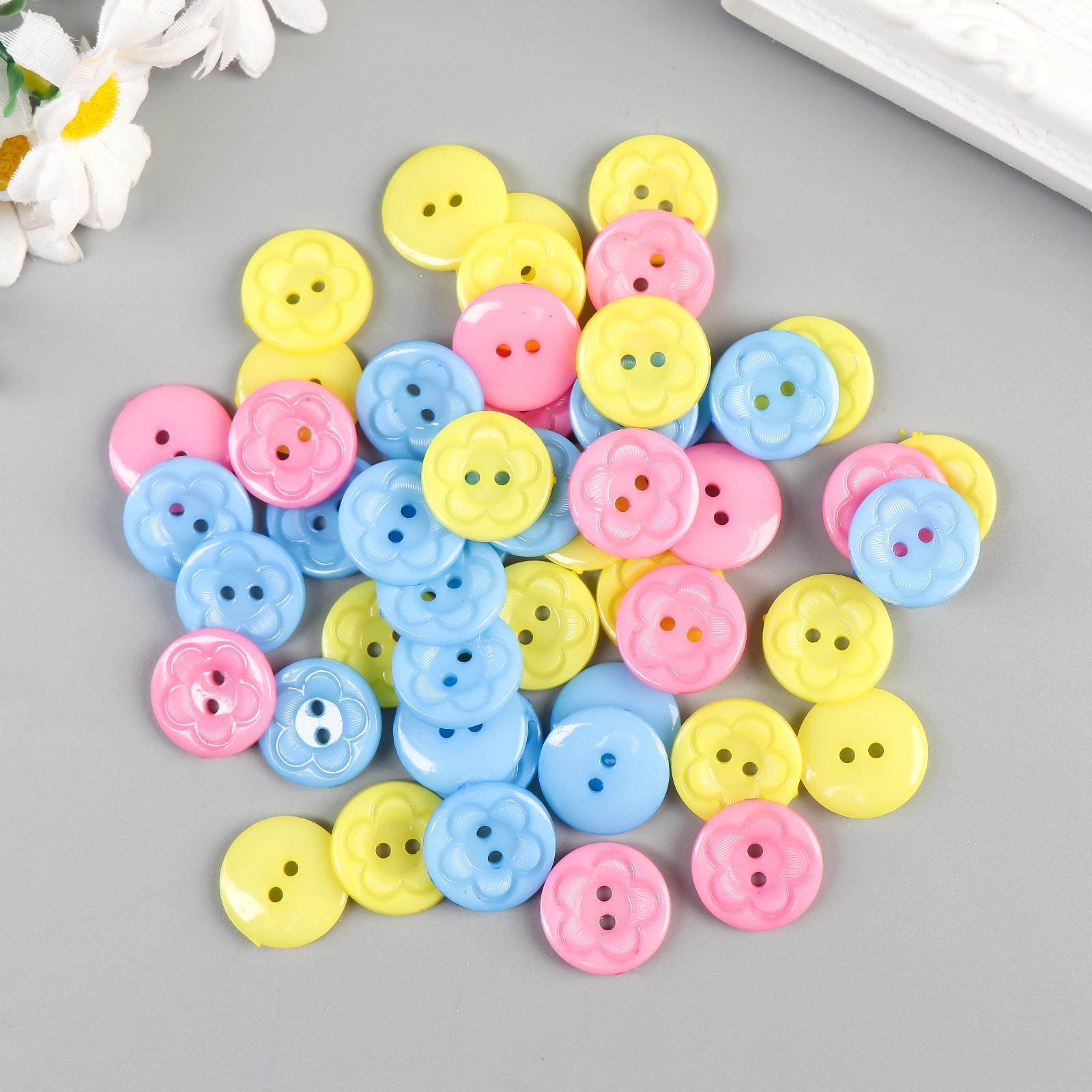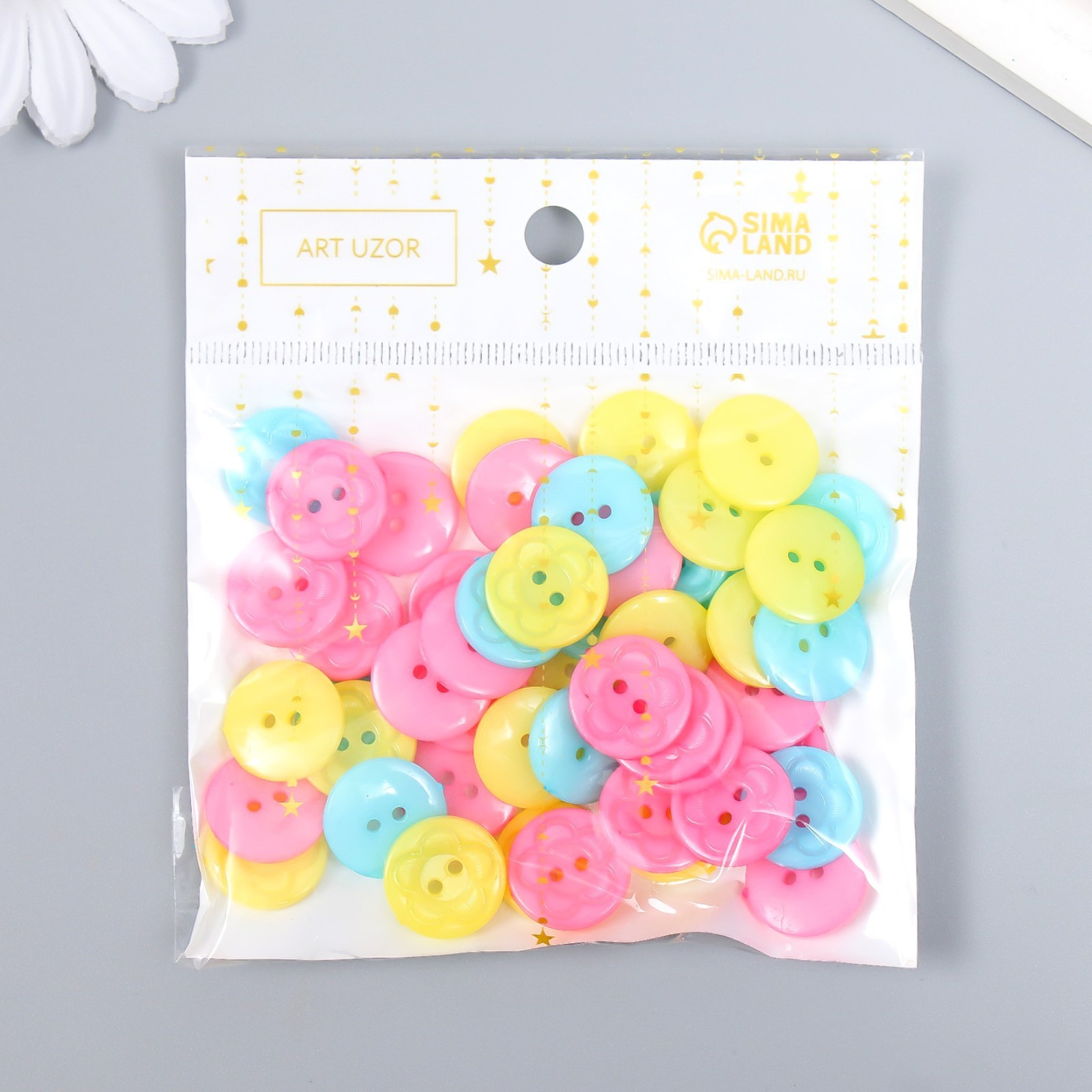 Каталог / Шитье / Пуговицы / Пришивные / Набор пуговиц на 2 прокола Цветочек в круге блистер 50 шт. (Арт Узор 2519503) 18мм пластик