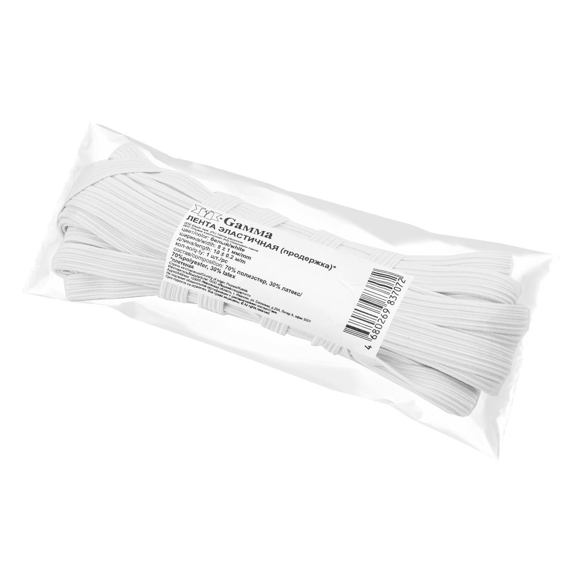 Ленты эластичные производятся с применением латексной нити с оплеткой из полиэфирных волокон, Линейная плотность сырья на 100м/гр- 382, 4±30, 6