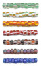 Бисер полосатый, состоящий из 2-х или 3-х цветов, отверстие круглой формы. Используется для бисероплетения браслетов, бус, колье и т.д. Для декоративного оформления одежды и обуви, вышивания картин и т.д