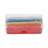 Мел прямоугольной формы, с содержанием воска, нормальной твердости. Для обмеловки различных тканей. Предназначен для нанесения контуров на длительный срок. В коробке 4 цвета мела: белый, синий, желтый, красный. Содержание воска в меле 4%.