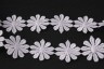 В форме ромашек. Кружево гипюр состоит из выпуклых кружевных элементов, соединенных сетчатыми "связками". Кружево гипюр имеет ажурное плетение, что придает ему особый изыск. Применяется не только для декоративной отделки женской одежды и домашнего текстиля, но и в декоре интерьера. Рекомендации по уходу за изделиями из гипюра: - стирать гипюровые изделия только руками, в воде температурой не более 40 градусов - не следует сушить на солнце - не стоит отжимать изделия из гипюра в барабане стиральных машин, иначе он может потерять свою форму -температура гладильной поверхности утюга не должна превышать 150 градусов, и настоятельно рекомендуется использовать при этом увлажнитель или парообразователь. Состав: 100% полиэстер