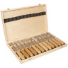 | Описание | Набор стамесок "Mr. Carving" предназначен для ручной резьбы по мягким породам дерева без применения молотка, киянки. В набор входят 12 стамесок: прямая стамеска - 7мм, полукруглая прямая стамеска - 17мм, прямая стамеска - 8мм, плоская стамеска - 6, 5мм, полукруглая прямая стамеска - 10мм, плоская стамеска - 14мм, плоская стамеска - 6, 5мм, эймус прямой - 16мм, плоская стамеска - 6мм, полукруглая прямая стамеска - 11мм, плоская стамеска-клюкарза - 7мм, полукруглая прямая стамеска - 6мм. Металлические части стамесок изготовлены из стали марки 65Г. Набор поставляется в подарочной деревяной упаковке |