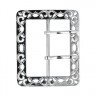 Пряжка декоративная с перекладиной и 2-мя язычками квадратной формы. С узором по всей поверхности. Размер пряжки: 55х67 мм. Размер перекладины: 48 мм. Используется в одежде, сумках и т. д. Покрыты защитным слоем, который дает возможность изделию не ржаветь. При значительном повреждении защитного слоя ржавение возможно