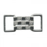 | Описание | Декоративная застёжка, состоит из 2-х частей, которые при закрывании образуют прямоугольник, состоящий из 3-х горизонтальных брусков. Для застёгивания детали вставляются одна в другую. Имеются отверстия для фиксации застёжки на изделии лентой шириной 12 мм. Используется для украшения одежды, сумок и т. д. Покрыты защитным слоем, который дает возможность изделию не ржаветь. При значительном повреждении защитного слоя ржавение возможно. Размер украшения: 36х16 мм |
